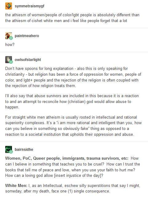 My exreligion uses harsh social control and isolation to force dependency. I left my religion because god is a monster. When I came out at 15 my mom didn't talk to me for three days and I wasn't sure I wouldn't get kicked out of the house. Finding the logical, rational reasons that religion didn't make sense gave me a shield. It let me say to the people threatening to take away all my social supports and telling me I was destroying my family and damning myself that *nothing they said made sense when compared to reality*. I left because God is Hate. I was able to say it out loud because I could show he's fake.