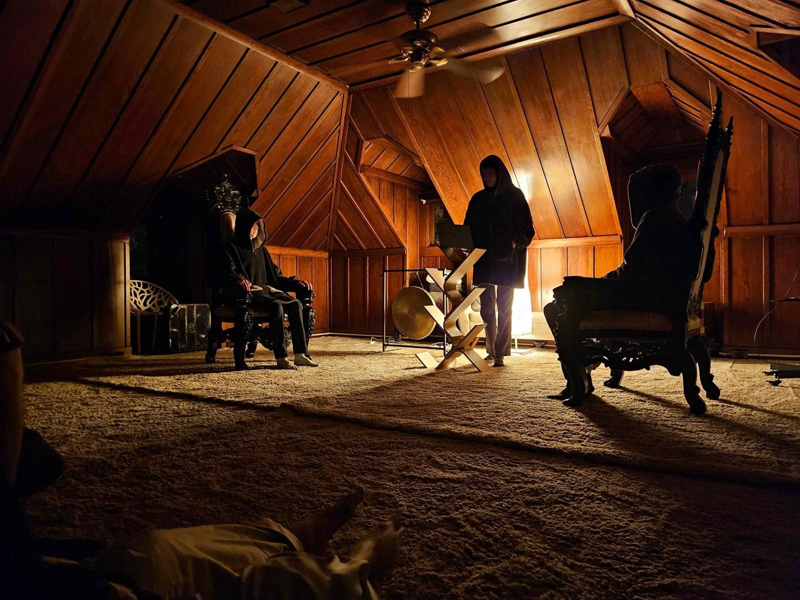 The attic was fully dark when we entered & seated ourselves, the lighting used for the ceremony was warm, low, and behind the speaker.
