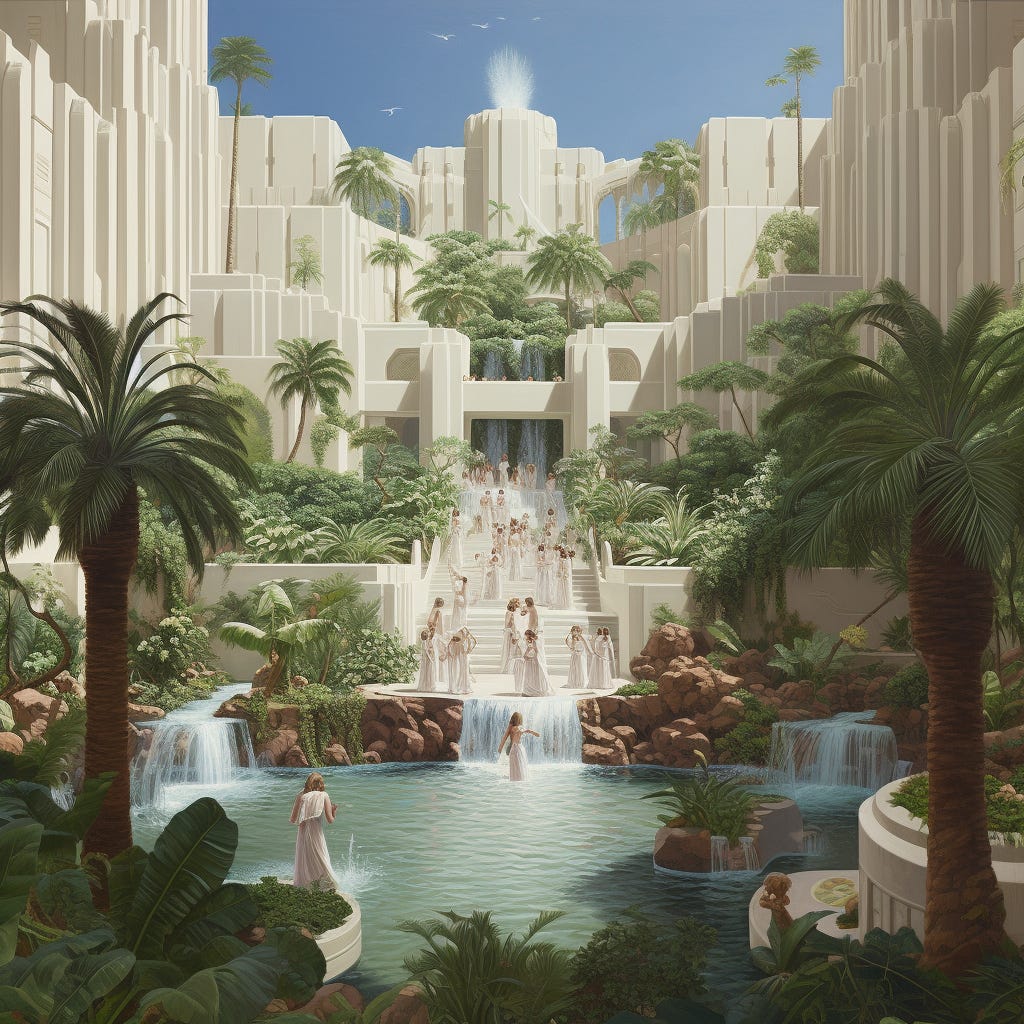 We returned to find a beautiful temple-style tent playing soft hippie music, and a lot of beautiful people in extremely white ceremonial dress. The sort of clothes you’d picture sun worshippers living in the desert wearing - light, flowing, showing lots of skin, with some sheer wraps. Like most cults they put their most attractive people up front to entice outsiders. Everyone there was fit and young. They all smiled and met your eyes, very inviting smiles, like they were happy to see you but wanted to give you space to get comfortable.